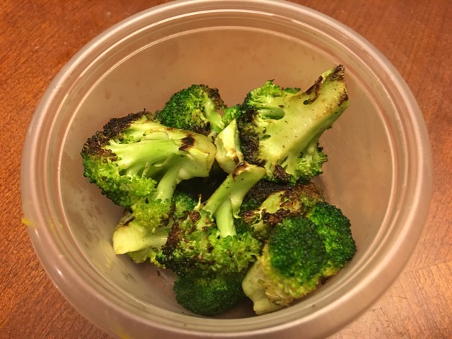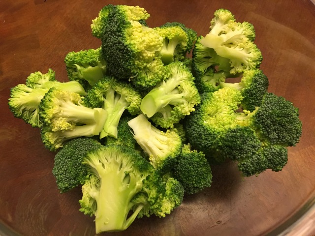 IMG_9473Of course, there wasn’t enough squash for five portions, so I also prepped a broccoli crown into florets . . .