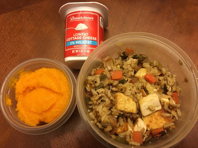 IMG_9478With protein, grain, and veg all set, I added a serving of one of M’s absolute favorites, cottage cheese.  This week, M’s lunch will be one of these two options: