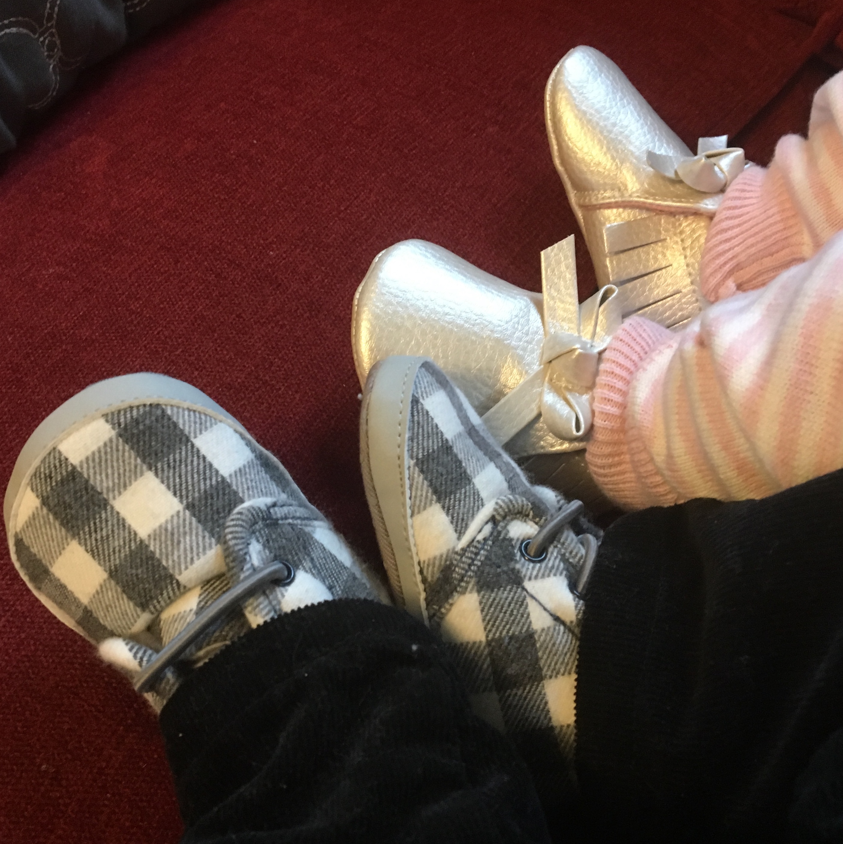 And today is the first time ever that the twins are wearing shoes.