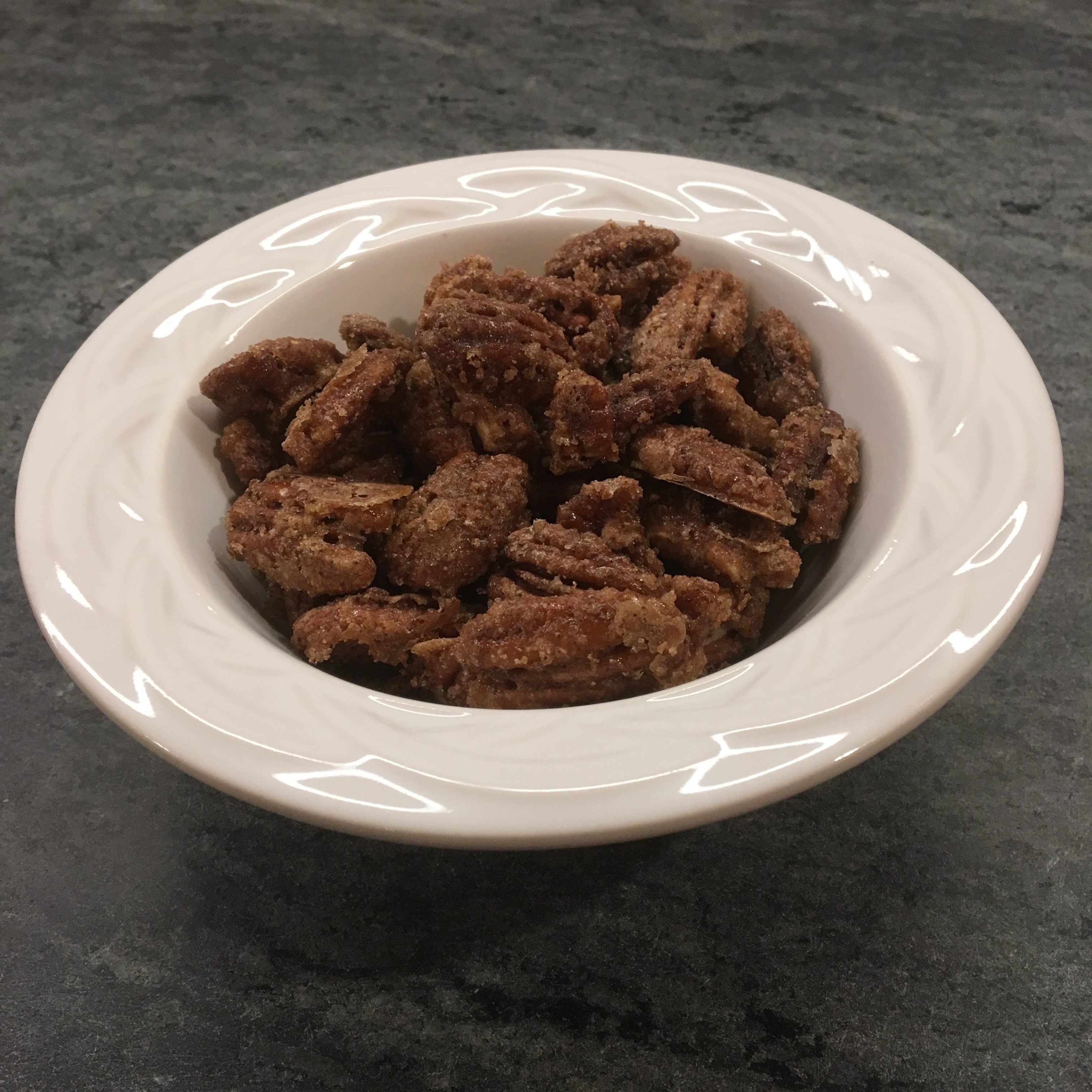 Here are some spiced candied pecans that I put out with the appetizers and then again with dessert.  They are that good.  Recipe is from Smitten Kitchen.
